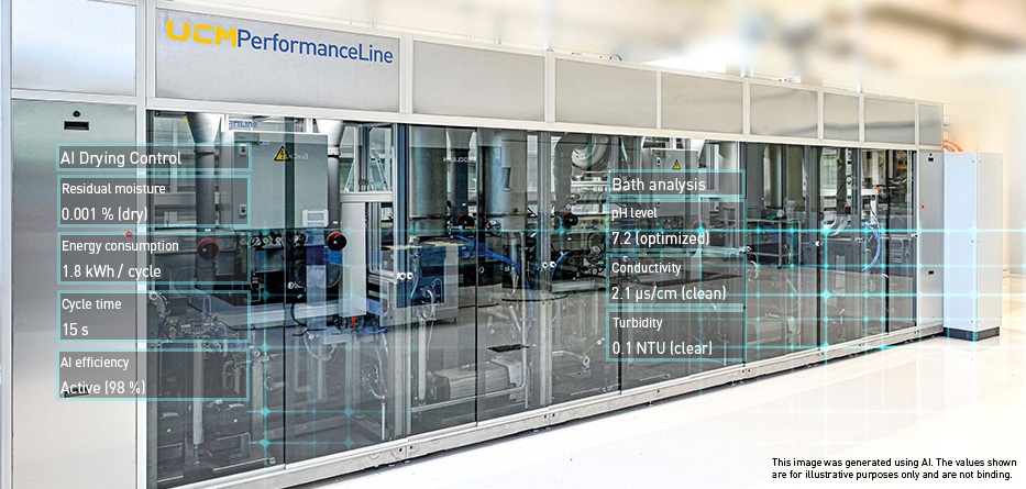 “High-end efficiency right out of the box” by purchasing a new, modern parts cleaning system that comes standard with interfaces for Smart Drying and/or Lab-on-a-Chip. This allows customers to invest directly in future-proof, CO₂-optimized manufacturing.